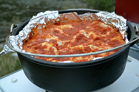 Lasagna is great to cook in a Dutch oven. My husband has been cooking this dish for Big Water Blowout for the last few years. I love watching as the aromas of spicy sausage and bubbling cheese draw friends and family around the Dutch oven, plates in hand, ready to dig in the moment it is done. It may seem like a lot of work to prepare, but it's actually very simple to make. Prepping the ingredients at home ensures fast and easy assembly. Next time you go camping, try this delicious recipe. I promise the whole camp will be happy you did!