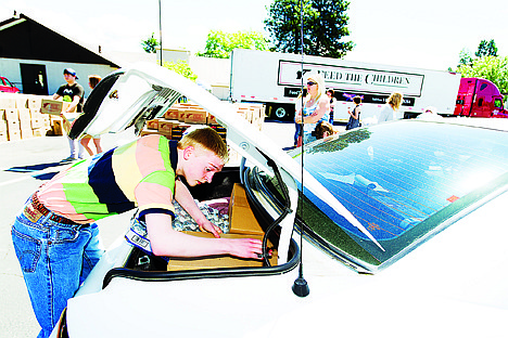 The Parkers were among 400 families to benefit from a distribution of 50,000 pounds of food and personal care items in Coeur d'Alene on Wednesday. The food was provided by international nonprofit Feed the Children, and distributed by the Kootenai County CAP, with the help of Heart of the City Church.