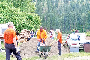 Volunteers on Monday were summoned to 111 Riverside in Troy as rising water from the Kootenai River has threatened a residence there.