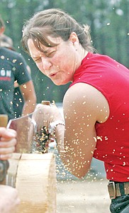 Chrissy Ramsey of Naches, Wash., partnered with Lauren Bergman of Kalispell turn in a time of 17.185 in the women's double buck competition Saturday.
