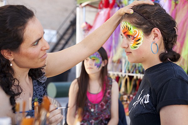 Fancy Face Design painter Kathleen Francis, left, paints a design on 15-year-old Kateri Cook, right, at Thursday!Fest in downtown Kalispell on June 28. The free festival will take place every Thursday through Sept. 6, from 5 p.m. to 8 p.m.