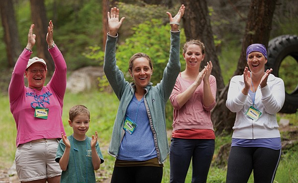 Participants at the For One Another Family Camp celebrate after completing a maze obstacle in Kalispell on June 22. The camp is designed to celebrate life, family time, discover new strategies and hope with other families who have a cancer diagnosis.