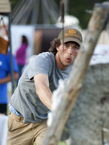 Ted Petersen from Whitefish throws a leather handle mountain man knife at the Midway Swap Meet and Farmers Market in Columbia Falls on Friday evening, June 29. Lessons for tomahawk knife throwing can be purchased for $5.