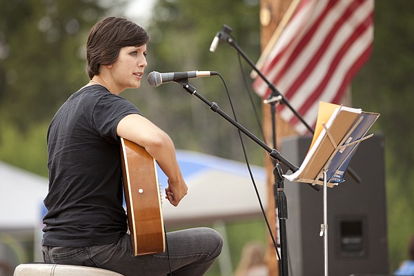 Oshinn from Kalispell plays at the Midway Swap Meet and Farmers Market on Friday afternoon, June 29. Oshinn learned to play the guitar last October after her band broke up.
