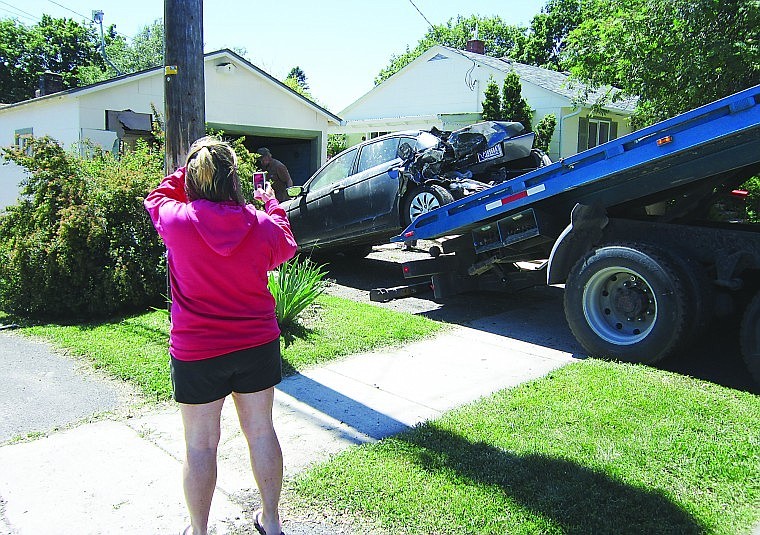 In the alley across from her West Nevada Street home, a minivan increased to full acceleration, striking a utility pole and launching over a boulder, then clipping the corner of a garage as it approached the road.