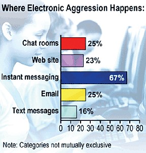Electronic messaging through e-mail, text, forums, blogs and social-networking sites are some of the tools used to harass.