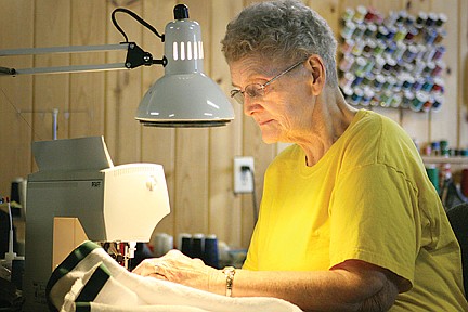 On Saturday, Feb. 25, seven individuals cramped into Zippers and Patches, the small shop owned by Darlene, Ray and Larry Salomon, and spent about seven hours putting together bibs and ditty bags for some area organizations and extended care centers.