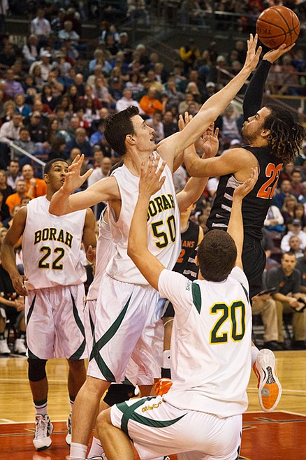 Tucakovic, who came into state averaging 15 points per game, made just two baskets all night. But both came on 3-pointers from the left baseline over the Post Falls zone in the first two minutes of the game for a quick 6-0 lead. Oddly, Borah then missed 15 straight 3s until its next make late in the third quarter.