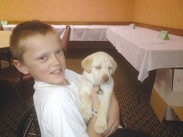 The five-and-a-half week old yellow Labrador retriever puppy was part of the live auction, and Spencer was watching it during the event, said Robin Kimbro, his mother.