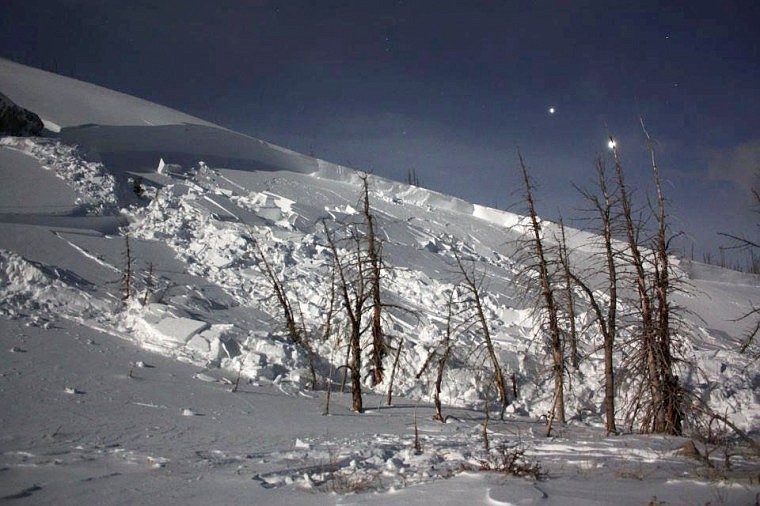 A member in the party recalled the incident in a report compiled by the avalanche center: “We were standing on the flat ground, a big whomph ensued, and I immediately saw a large propagation across the crest of the ridge. This was followed by a loud crack as the crown was establishing. Talk about being in the wrong place at the wrong time, as we were literally standing right underneath a slope that was currently sliding. A small group of burnt lodgepoles were the only ‘break’ in between us and the avalanche. Immediately, we began scurrying directly away from the slide, and luckily it stopped just shy of our skin track.”