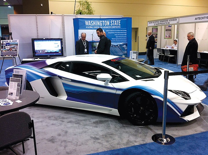 Washington state has a composites booth featuring a Lamborghini from the University of Washington's Advanced Composites Structures Lab.
