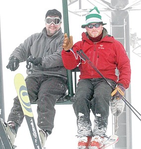 Chad Munro, left, and Pat Grotjohn arrive at the summit Saturday during Crazy Day 2012 at Turner Mountain.