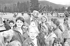 Wearing of the Green In literature, a leprechaun is a little man who reveals the location of a hidden crock of gold to anyone who catches him. In the McGrade school yard, at recess on St. PatrickÕs Day, students ÒcaughtÓ their very own leprechaun (building custodian Rick Hunting), whose crock (hidden by the crowd) was filled with gold and white jelly beans, which were as good as gold to these children. Some thought the leprechaun looked very much like last yearÕs Easter bunny. Chuck Blair photo from the March 20, 1992, files of The Western News.