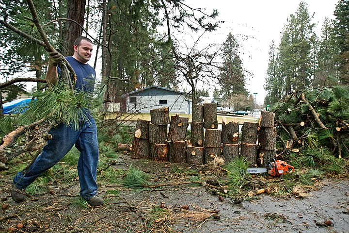 Winds whipped between 40 and 50 miles per hour across the Inland Northwest, according to the National Weather Service Spokane office. Around 1:30 p.m., winds snapped a tree in half on North 12th Street. About 20 feet of timber came crashing down, exploding all over the Coeur d'Alene home's driveway.