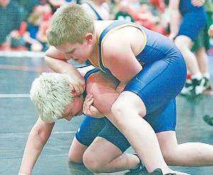 Libby's Tanner Marshall takes control of his match with Fisher Billsborough of Columbia Falls