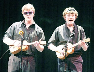 Josh Broderick, left, and Michael Curtiss nailed down second place with their original arrangement of "This Girl," during Thursday's fourth annual Talent Show at the Memorial Center.
