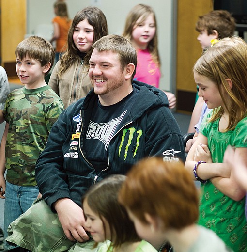 Third-graders at Ruder Elementary School asked wounded Marine Tomy Parker about the intimate details of his life last week during the veteran’s visit to the school.