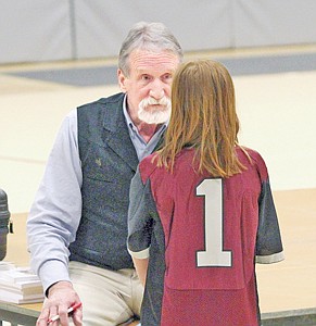 Mazzy Hermes gets a bit of advice from Mac Bledsoe Tuesday.