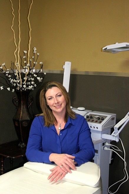 Karrie Shinnick sits in her private room at Rockstars Salon, where she offers services such as facials, waxing, eyebrow and lash tinting, and human energy chelation therapy.