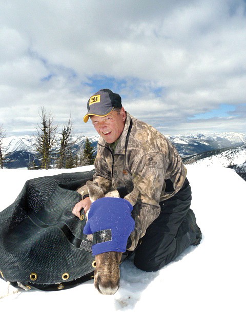 British Columbia biologist Larry Ingham holds a caribou before releasing it on a ridge in the Purcell Mountains just outside Cranbrook, B.C., this weekend.