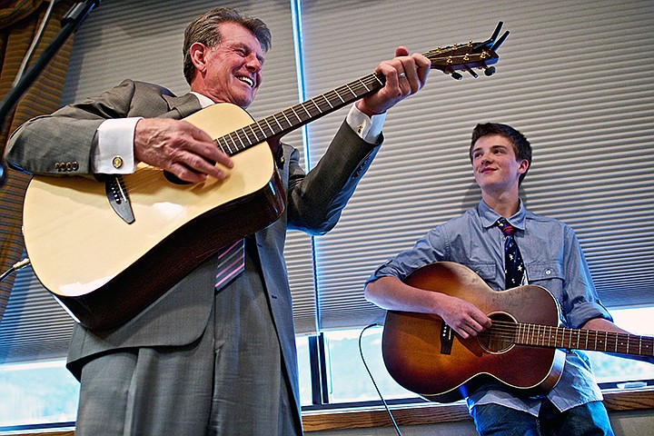 Not only did Otter help rally about 250 attending Panhandle Pachyderm Club’s “One Voice for Victory” dinner about the November election, he played the guitar and sang Glen Campbell’s “Gentle on My Mind” before saying a word at the podium.