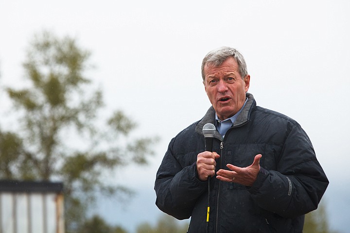 Sen. Max Baucus speaks Thursday afternoon during the groundbreaking ceremony for the Flathead County Rail Park. Thursday, May 3, 2012 in Kalispell, Montana.