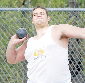 Sawyer Zimmerman with 44' 9-3/4" at the County Track Meet Tuesday afternoon.