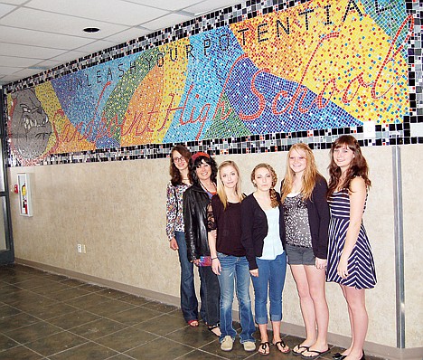 After countless hours of tedious and frustrating work, local art students have finished work on a mosaic mural now gracing the entry hall of Sandpoint High School. Committing themselves to a project that took most of the year, Emily Howerton, Breik Stockdale, Stephanie Colin, Sage Piatt and