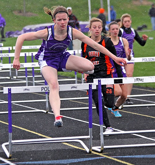 Aspen Runkel swept the hurdle races, winning the 100 in 16.54 seconds and the 300 in 49.81, narrowly edging teammate Rachel Hoyt (16.73, 50.61) who took second to Runkel in both races.