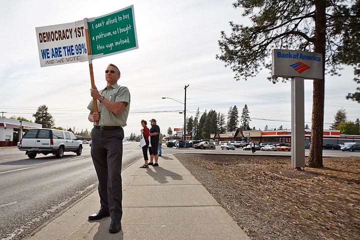 That's why the Post Falls man was among 13 who participated in a protest along Seltice Way at the Post Falls branch of Bank of America on Wednesday night due to the corporation's alleged handling of foreclosures and other practices. The protest was part of a nationwide rally organized by MoveOn.org.