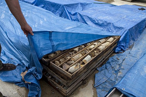 The workers periodically pulled up samples and knocked them into boxes. The first 40 feet yielded loose rocks and gravel. About 160 feet down, cylinders of rock came back peppered with gold. At 1,000 feet down, rocks were heavily streaked with copper.