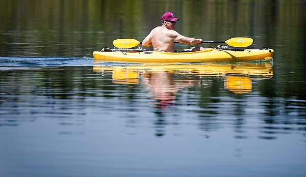 Michael Langohr paddles his way across Foy's Lake west of Kalispell Monday afternoon. More kayak weather is in the forecast, with high temperatures in the upper 70s and lower 80s in the next two days.