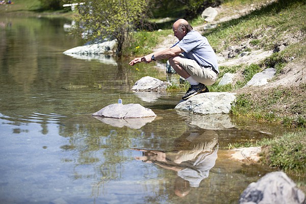 Checking Temps Nick Russin checks the temperature at Foy's Lake on Monday afternoon, May 14, west of Kalispell. Russin, a member of a local swim club, says he is usually one of the first ones in and the last ones out.