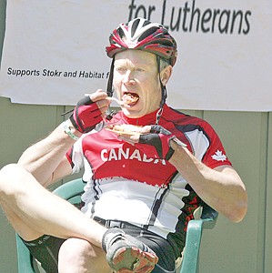 Rhubarb was the flavor of the day for Wayne Pridham of Calgary, Alberta at the famous pie stop on Pipe Creek Road. You hear a lot of jokes of STOKR being the only century ride where one can actually gain weight by pedaling 100 miles!