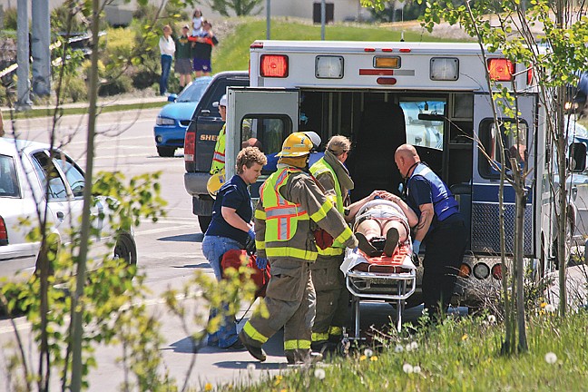 A woman required a ride in the Polson Ambulance after her car rear-ended another vehicle in the southbound lane of Hwy. 93 while Scott and Lake County Sheriff’s Deputy Levi Reed were processing the first accident scene.