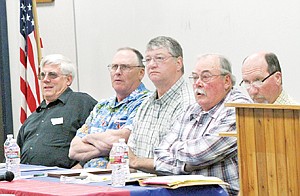 Scott Brandos, left, David Brandt, Dawain Burgess, Gilbert Cate and Mike Cole (Lincoln County Commissioner candidates)