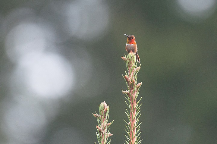 Patrick Cote/Daily Inter Lake A Rufous Hummingbird perches a top a tree Wednesday morning near Whitefish Lake. Wednesday, May 23, 2012 in Whitefish, Montana.