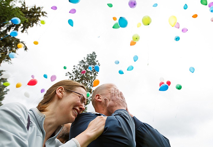 On a count of three, all relinquished their balloons to the air, exclaiming together, "We love you, Rhett!"