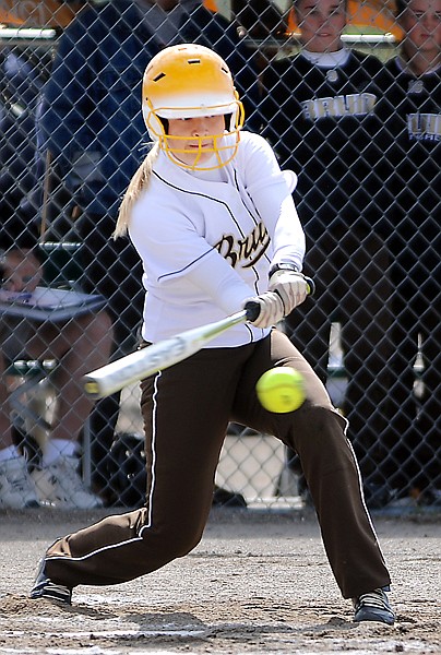 Helena Capital Bruins junior Quinci Robertson (22) bats during the first inning of a quarterfinal game against Great Falls C.M. Russell on Friday afternoon at the 2012 State Class AA Softball Tournament in Kalispell. Robertson went on to hit her first home run, a grand slam, during the second inning.