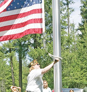 Maria Gregory had the honor of raising the flag Monday during Memorial Day ceremonies at Troy Cemetery.