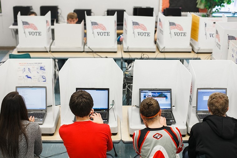 Patrick Cote/Daily Inter Lake Students cast their votes during a mock election at Flathead High School on Wednesday morning. Wednesday, Oct. 31, 2012 in Kalispell, Montana.