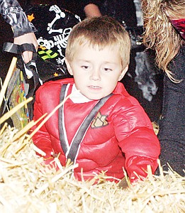 Four-year-old Jairdan Chandler searches for a toy in Hotel Libbys straw pile Wednesday evening.