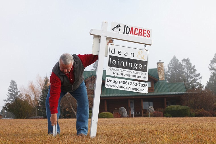 Patrick Cote/Daily Inter Lake Doug Zignego, a broker for Dean & Leininger, takes down a for sale sign at a property on Scenic Drive on Thursday morning. Thursday, Nov. 1, 2012 in Kalispell, Montana.