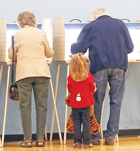 Take you granddaughter to vote day...Jillian Stewart, 4, waits patiently as her grandparents cast their ballots Tuesday morning.