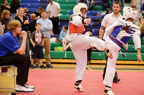 Emmett Aschim, 10, of Swan Lake, a senior blue belt at Big Sky Martial Arts School, takes part in the 15th Annual Big Sky Martial Arts Championships on Saturday, November 10, in Kalispell.