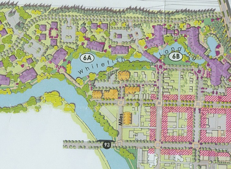 Conceptual plans showed a Whitefish Landing Resort with a hotel and high-density residential development. A pedestrian and bike promenade was also planned. The water amenity for small boats would have been constructed on BNSF Railway property.