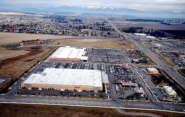 Aerial view of the Section 36 school trust land that has grown into one of Kalispell’s busiest commercial areas in north Kalispell. The land is currently home to Costco, McDonald’s, Lowe’s, Holiday Inn Express and others.