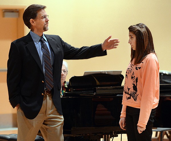 Guest Soloist, Bass-Baritone Stephen Morscheck works with Kelsey Nostrum of the Glacier Concert Choir on Friday, November 16, in Kalispell.
