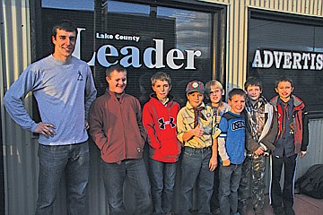 Next, the scouts walked to the Lake County Leader where they met Bryce Gray, a journalist. A journalist is someone who listens and takes notes about events or people and uses those notes to write news articles. Mr. Gray uses his computer to create the layout, which has all the articles, pictures, captions and headings in the newspaper. He asked who might want a job like his someday and Kieauneau rose his hand, which is a form of communication!