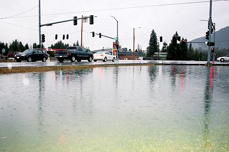 Soaking rains on Monday and Tuesday caused water to pond at the northeast corner of U.S. Highway 95 and Schweitzer Cutoff Road, where highway widening work is under way. There was also water running over part of Samuels Road, although Howard said that’s not an uncommon occurrence.